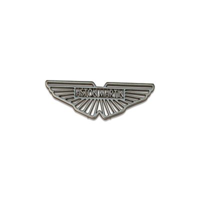 Ein vergoldetes Etikett mit einem silbervergoldeten Markenlogo für Handtaschen